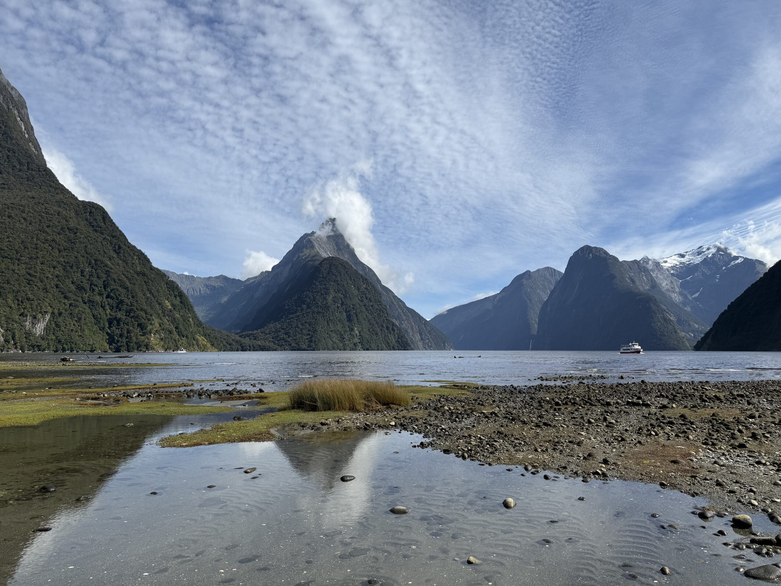 There is a peaceful (10 minute) loop trail that gives you the opportunity to enjoy the native flora and fauna up close, before reaching a beach that opens up to the famous views of Milford Sound. The lack of effort required to see a place so beautiful left me dumbfounded. A cruise is still an excellent way to see new vantage points and experience the narrow fiord in a more immersive way. There are plenty of companies that offer cruises that last around 3 hours, but naturally, that comes with an influx of visitors. The quantity of people in the cruise departure area was a juxtaposition from the tranquil lakeshore trail we had previously experienced, but we still enjoyed our boat ride and the unique views it gave us.